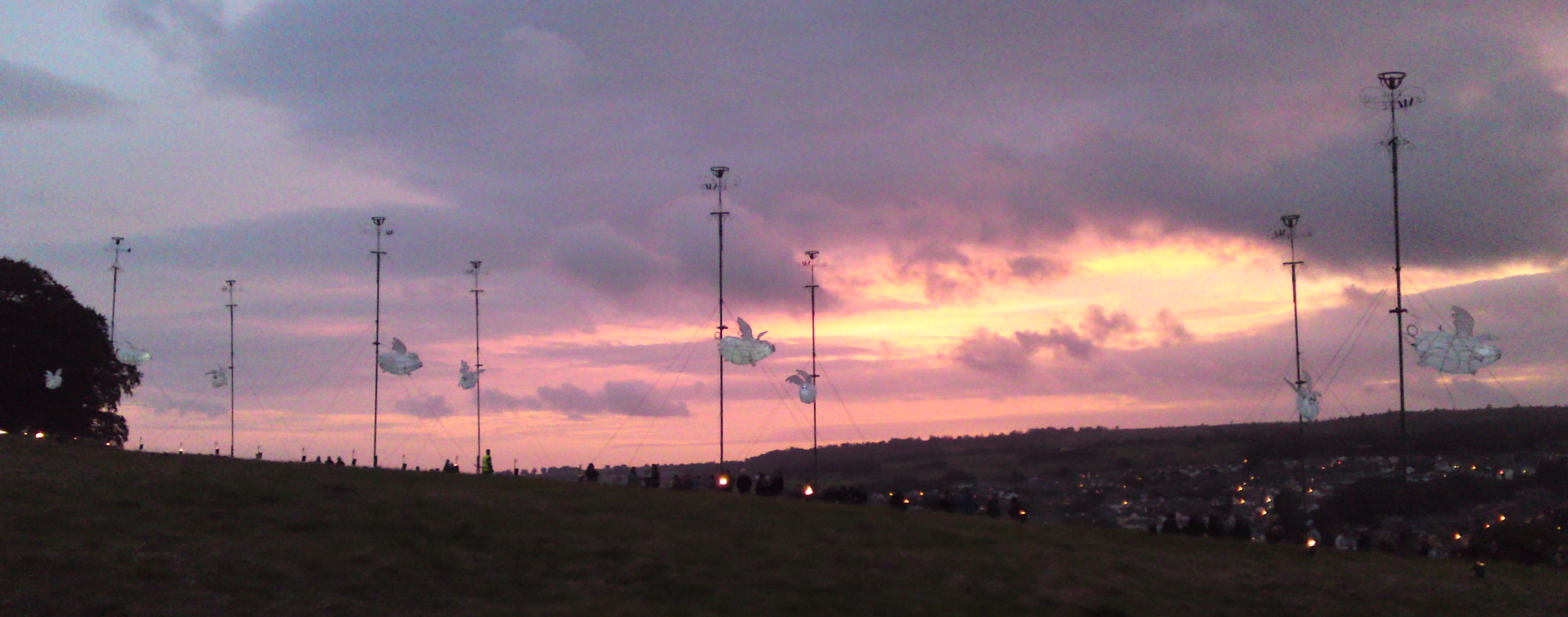 - A Big lantern pig accompanied by drummers processes round the circle of people