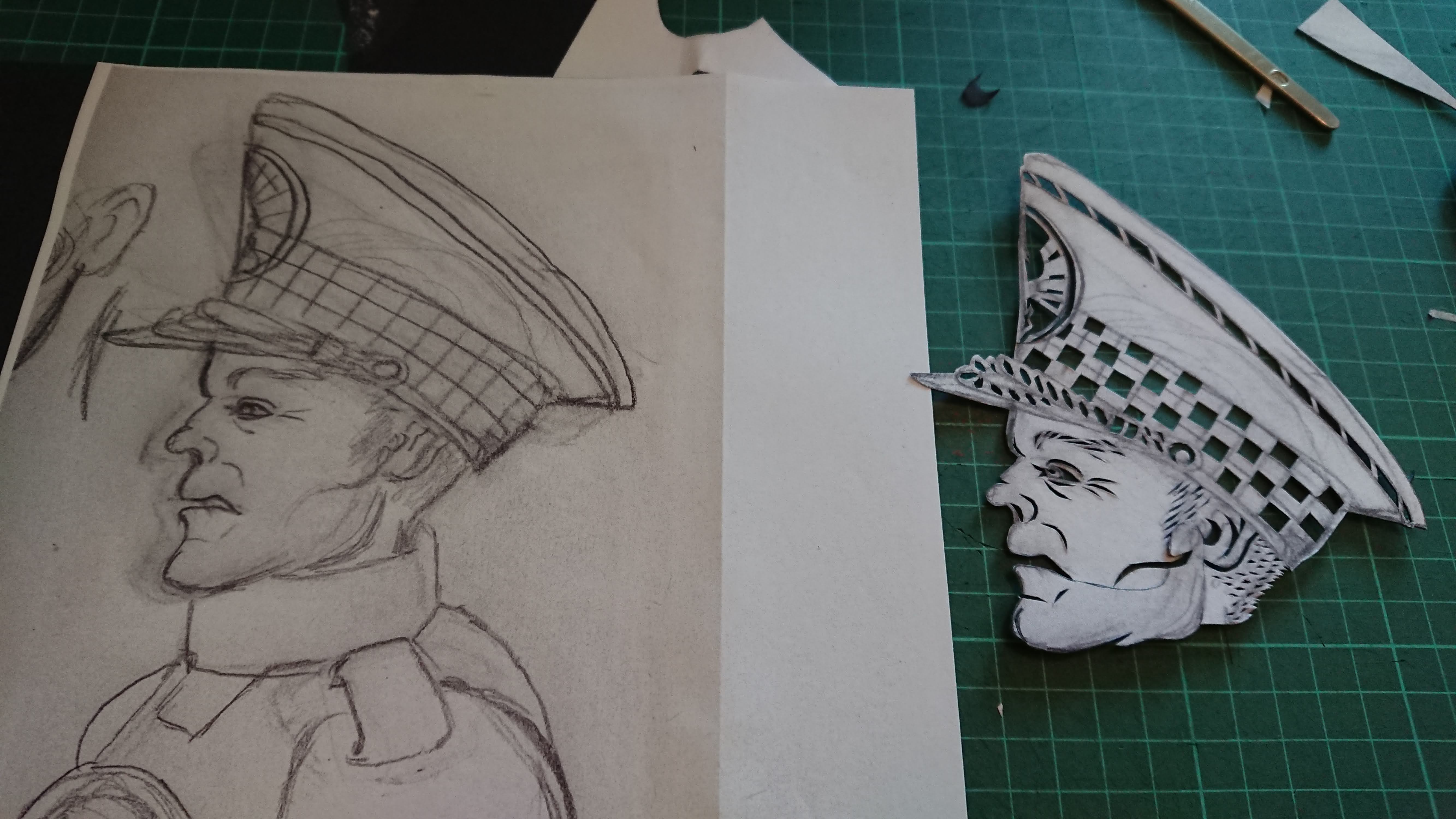 This character has very close cropped hair or stubble and I was not quite sure how to achieve this at first but I am happy with the finished effect. The fact that the hat covers most of his head meant I did not have to do too much stubble cutting out!