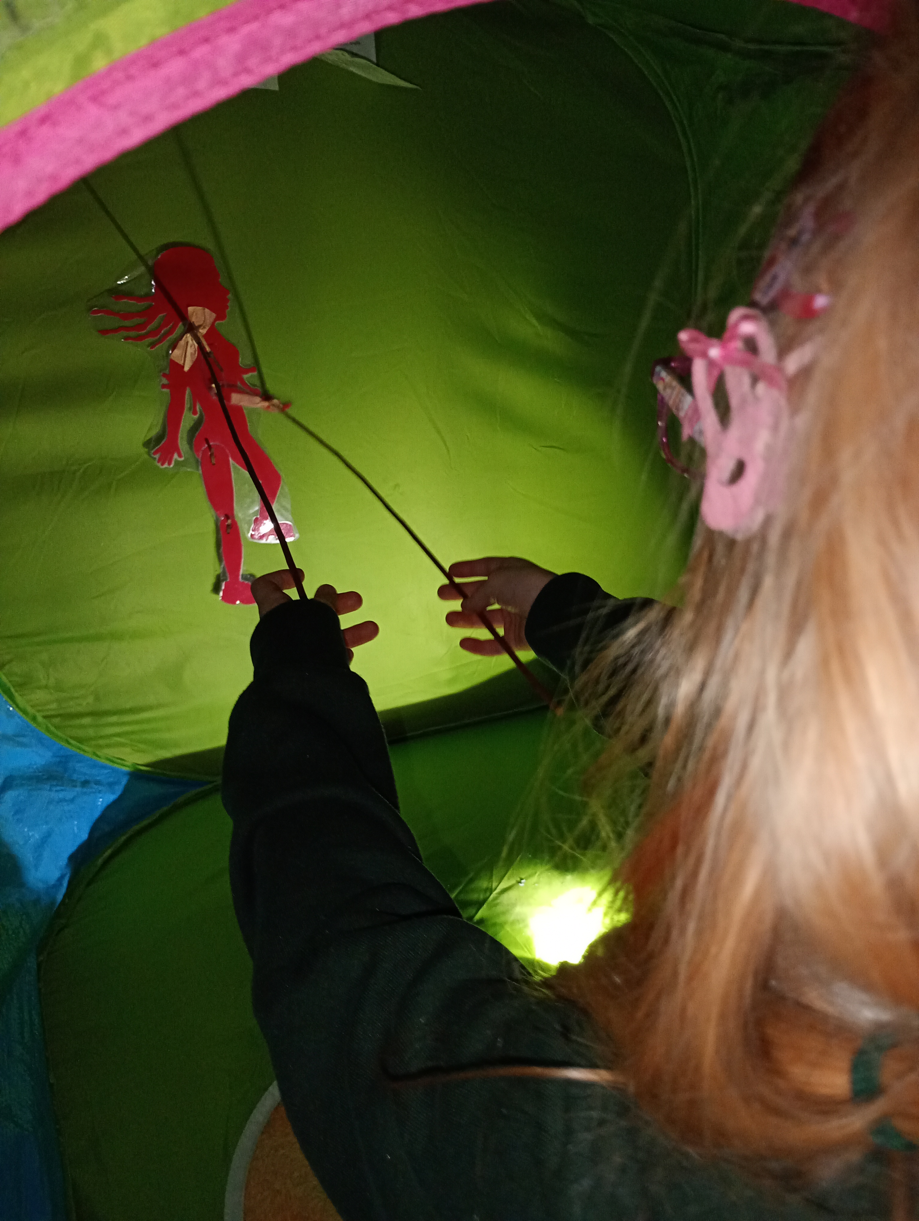Below is a short video showing photographs of the puppets themselves, followed by the shadows in action. I used both a wall and a pop-up tent to make these quick demonstrations. They show how even simple puppets made from card can withstand many years of repeated use — these particular puppets are around 25 years old.