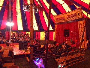 It turned out to be a touring Circus School with professionals and trainees performing alongside each other. Though it wasn’t as artistic and polished as Cirque du Soleil it did have an immediacy and a sense of real peril that was missing from “Quidam” simply because the performers were so much nearer to the audience. The tiny circus tent meant that a girl who did a trapeze act was literally bumping into the canvas roof when she was at the top of her swing. The contortionist, clown and juggler (who I think were professionals) were definitely highlights. The trainees were very entertaining too and it was great to see young people learning the circus trade.