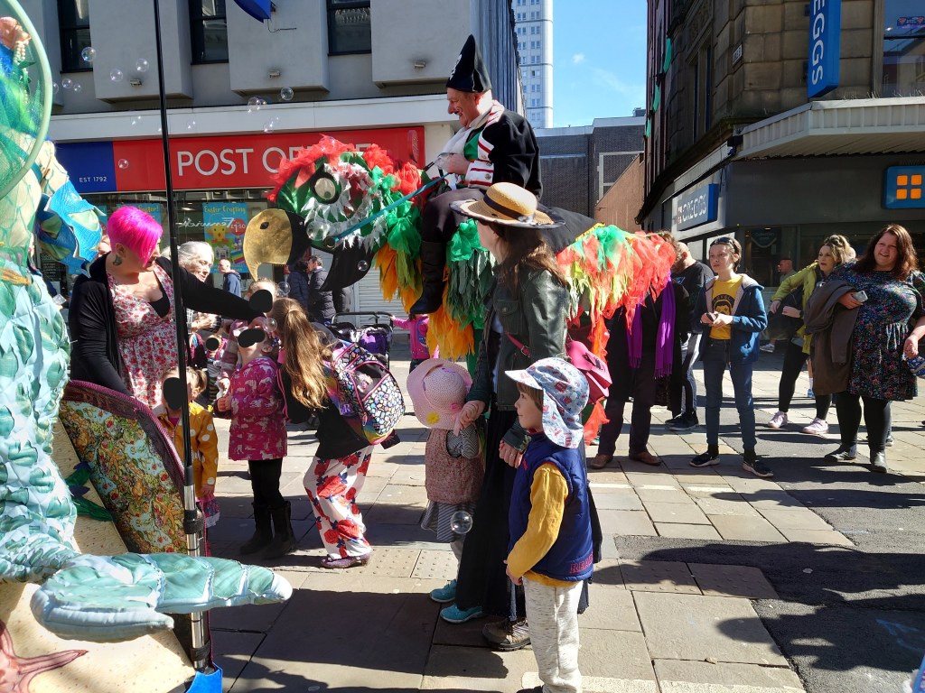 I decided to do our “Edward Lear’s Nonsense” show as it is slightly longer than “Jabberwocky!” and thought people would feel they were getting more value for money, I had also already performed “Jabberwocky!” in London and felt like it was worth trying out the other show this time. However, for busking purposes, I can’t help wondering now if the “Jabberwocky!” show would have been better, as with only 8 puppets, the turn around time for performing again would have been faster.