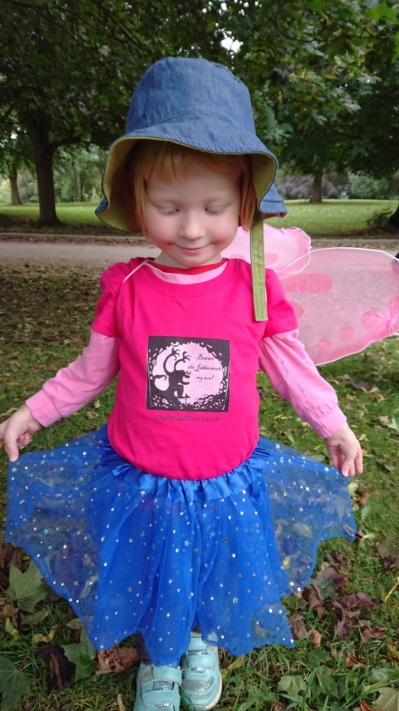 On Saturday we visited Yorkshire Sculpture Park in Wakefield and while we were there we tried out some of the products from the Rough Magic Theatre merch Shop. Miranda is showing off how you can combine our kids premium t-shirts with other costume items for a fun Halloween outfit. Don’t forget we now have the “Happy Halloween” design too. There’s 20% off everything for the next 4 days so why not stock up now?
