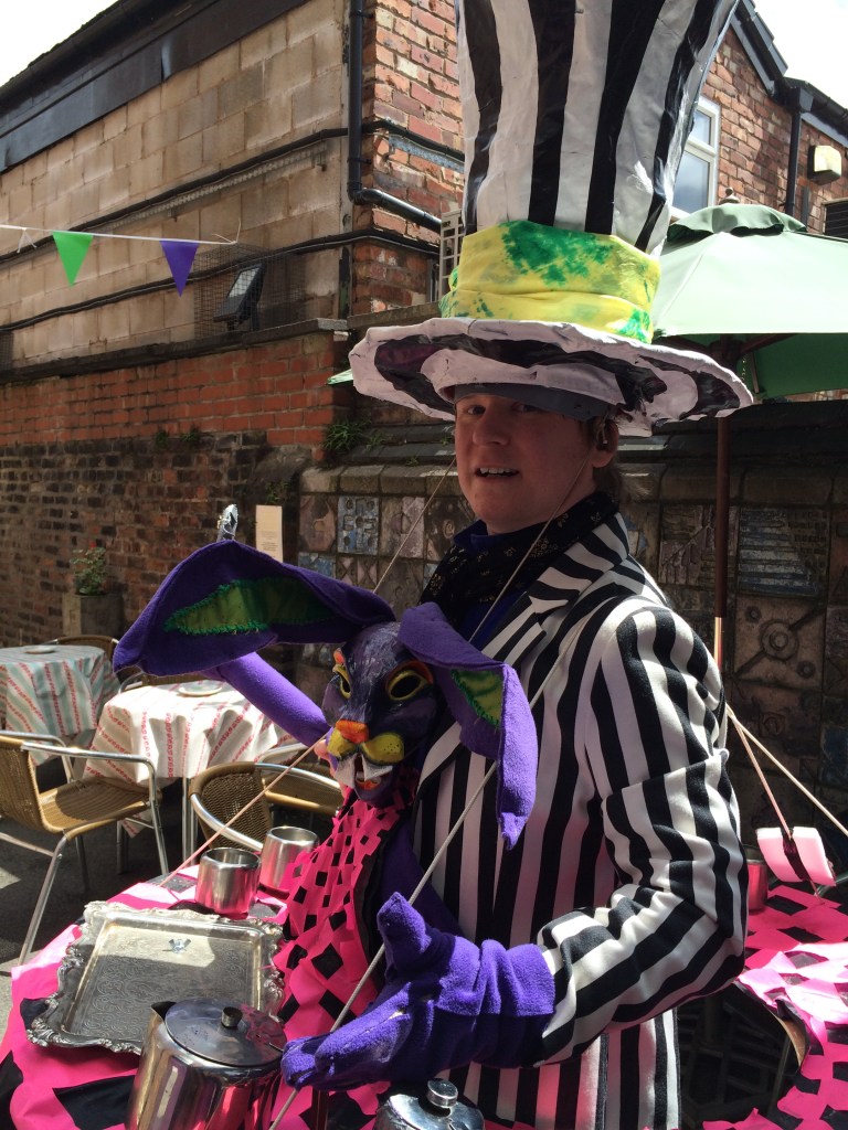 RMT’s Tim Austin stars as the Mad Hatter. Pictured in front of the Chapel Gallery, Ormskirk
