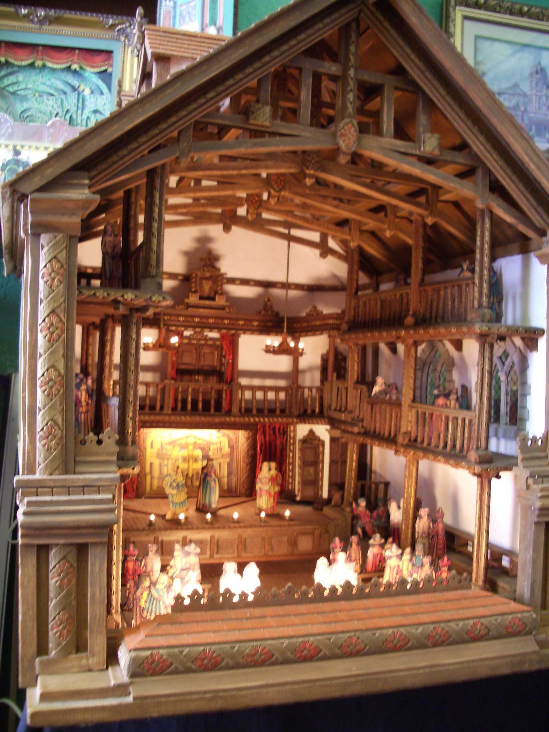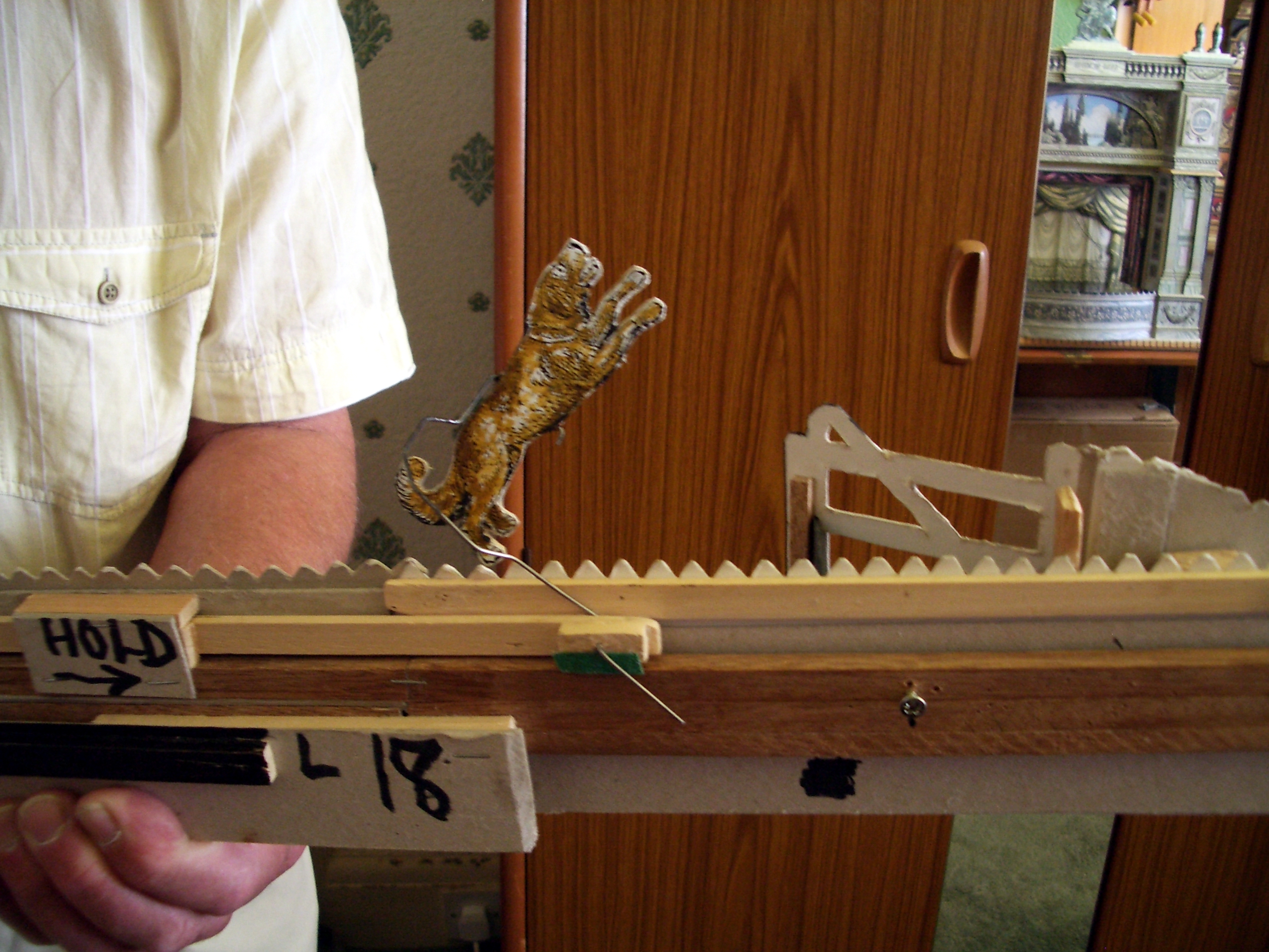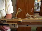 It turned out that James Morgan was the techy assigned to us and was an old school friend of my fellow performer Tim Austin from Norfolk. He was extremely helpful and efficient, even producing a big piece of wood, a saw and some other tools to fix our wooden expanding maiden. It is what we use to hang various costumes and other paraphenalia during the performance and it had cracked through on one of the joints. If James hadn’t swiftly and effeicently done an excellent temporary repair job it could have proved very awkward indeed during the performances.
