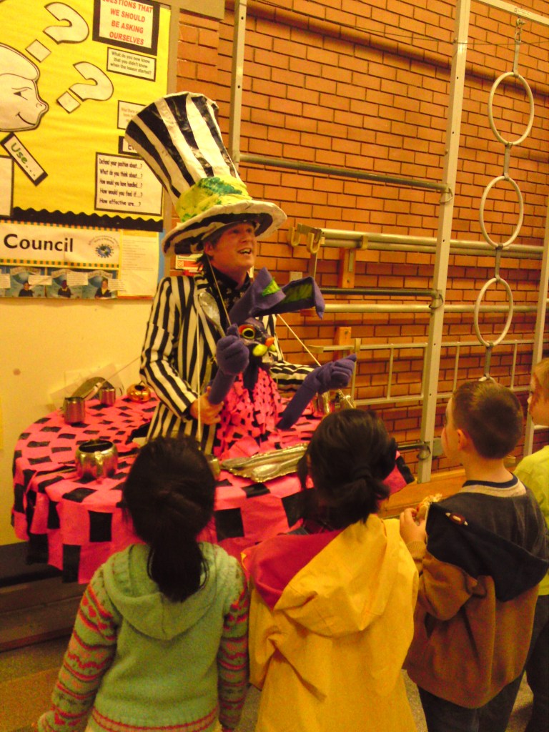It appears that the second problem has also been solved simply by using the show in places where a small audience is an advantage.  The show is perfect for small scale venues or smaller groups, such as Children’s parties and Pupil Referral Units, (where children who are struggling in mainstream education for whatever reason are taken out to be taught in smaller groups.  They get more individual attention and staff are trained to deal with their needs and difficulties).