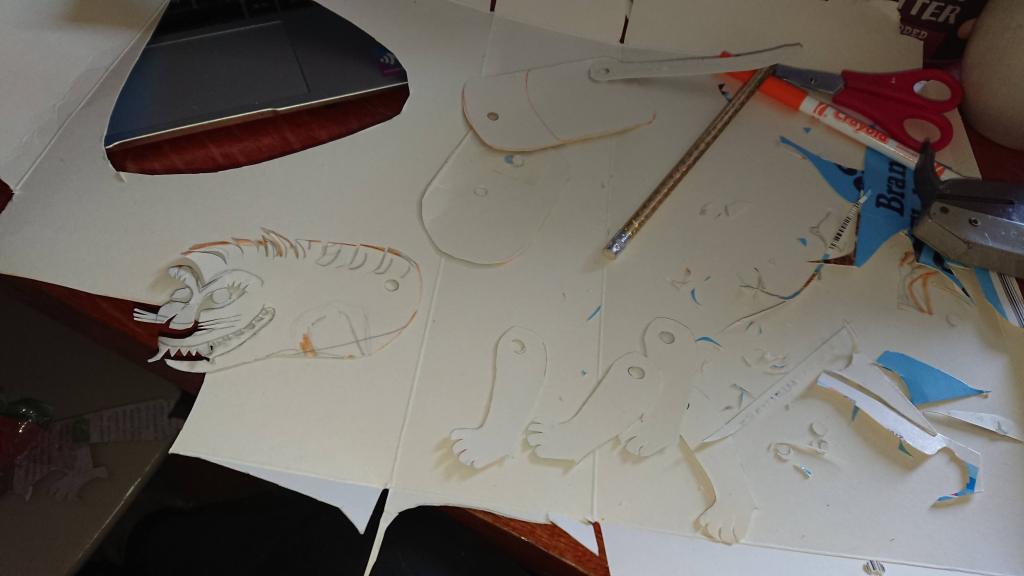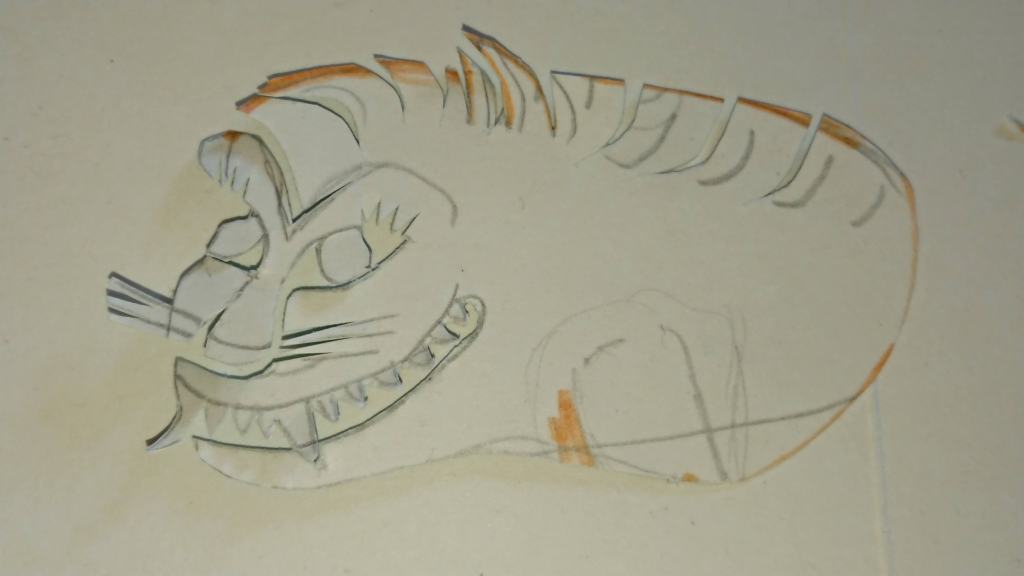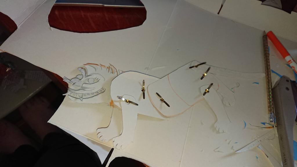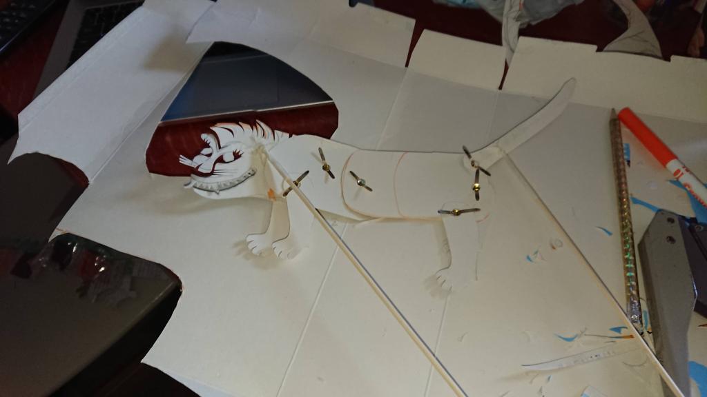 I searched for pictures of traditional Chinese shadow puppets and recreated my own simplified versions and in the process discovered lots of interesting things about the way the puppets were jointed. I found a picture of a Chinese Lion puppet (I know it’s not a Zodiac animal, but I did extra lions and dragons so that there would be enough puppets for all the children) and when I recreated my own version was astounded at how well it moved and in particular the fact that you could get such a huge variety of movements using just one stick on the lion’s head and one on its tail. It made me realise that when you see a picture of a Chinese shadow puppet, you are only getting a small appreciation of what it is like compared to seeing it perform, because so much of what is brilliant about them comes from the jointing and the way they move.