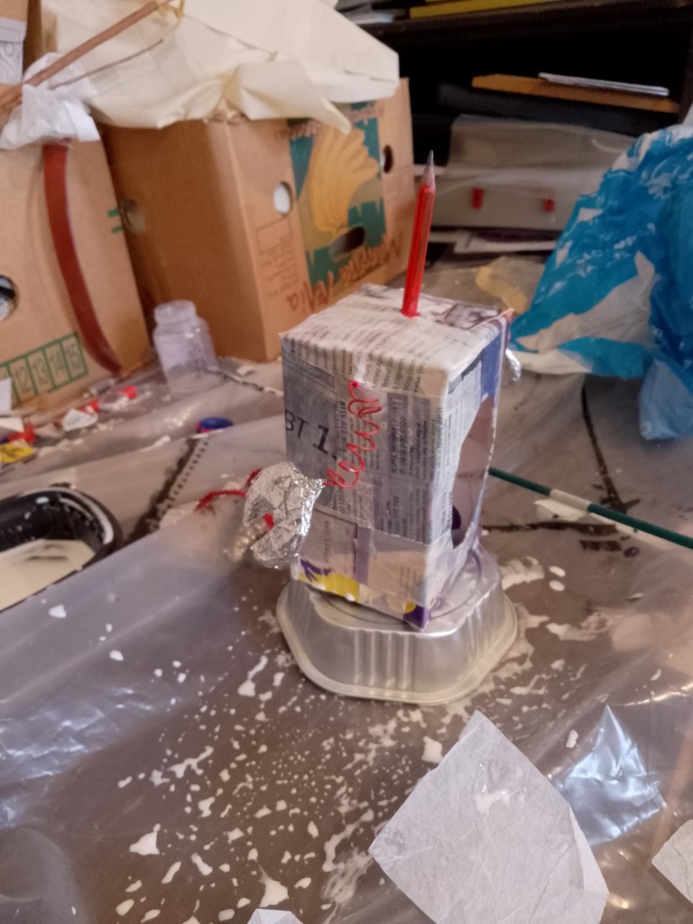 After trying out all of the puppets that I have made so far with the Over-Head Projector and shadow screen I have been working out what extra puppets are needed to tell the stories. In many cases it is different sizes and arrangements of puppets I’d already made. You can see from the pictures that what I have been working on were larger scale articulated versions of Little Red Riding Hood and the Wolf which are to be used directly against the screen itself rather than on the flat bed of the OHP. I have also created a large scale head for Little Red Riding Hood to talk to the wolf, with an articulated mouth, (this is for the “Ooo Grandma what big eyes you’ve got” scene).