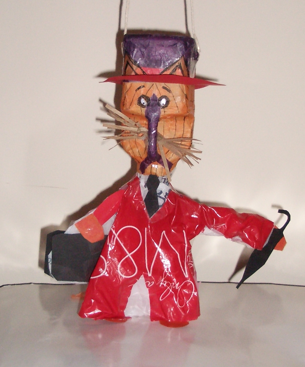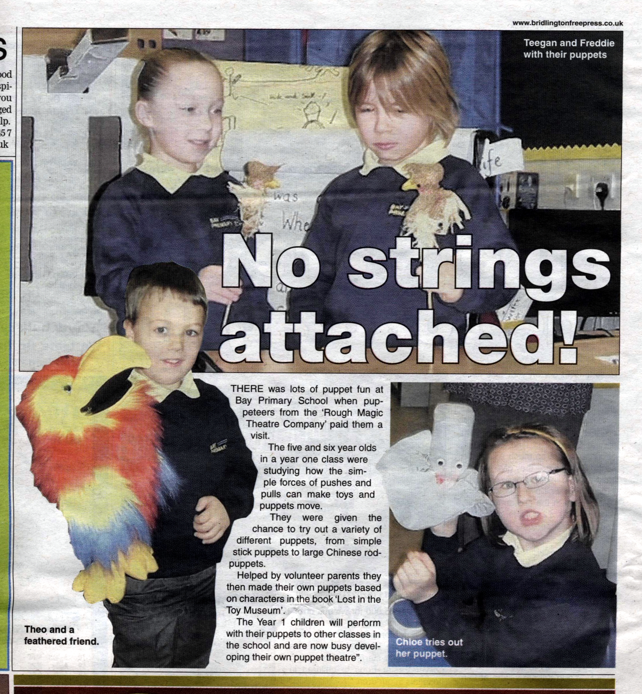 There was a moment of panic at the school when they thought the caretaker had disposed of their carefully collected plastic milk bottles for the puppet heads, but eventually they were found to have been tidied away to a “safe place”. Everyone knows that you should never put anything you want to find in a “safe place”. One of the classes had not collected enough milk bottles anyway and sent someone to buy a load of milk from the shop which resulted in an extremely large metal jug full of milk residing in the staff refridgerator!