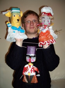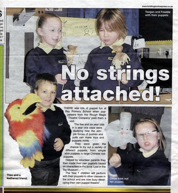 As you know they were working with the theme of “Lost in the Toy Museum” which they had been reading and were delighted with the puppet I modelled on a character from that book. I had ordered a copy from my local library some time back but it had not arrived and I used two pages that I had found online, and ideas from the V & A museum of childhood as a reference instead.