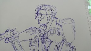 We wanted him to have a gun/guns for a weapon.  The future in our story is a dangerous place where people have to protect their resources from others, (who might try to take them) so being heavily armed is the norm.