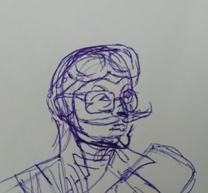 Here are some of the initial designs for characters on our new show “The Secret Keeper”.  This is our main character, (the “Secret Keeper” from the title).  He has a library of crime related books which make him an ideal person to act as detective for our murder mystery series.