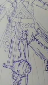 Our main character’s daughter is his bodyguard so we came up with a very heavily armoured/armed look for her.  She is designed to look intimidating to others so that (in many cases) a physical confrontation can be avoided.