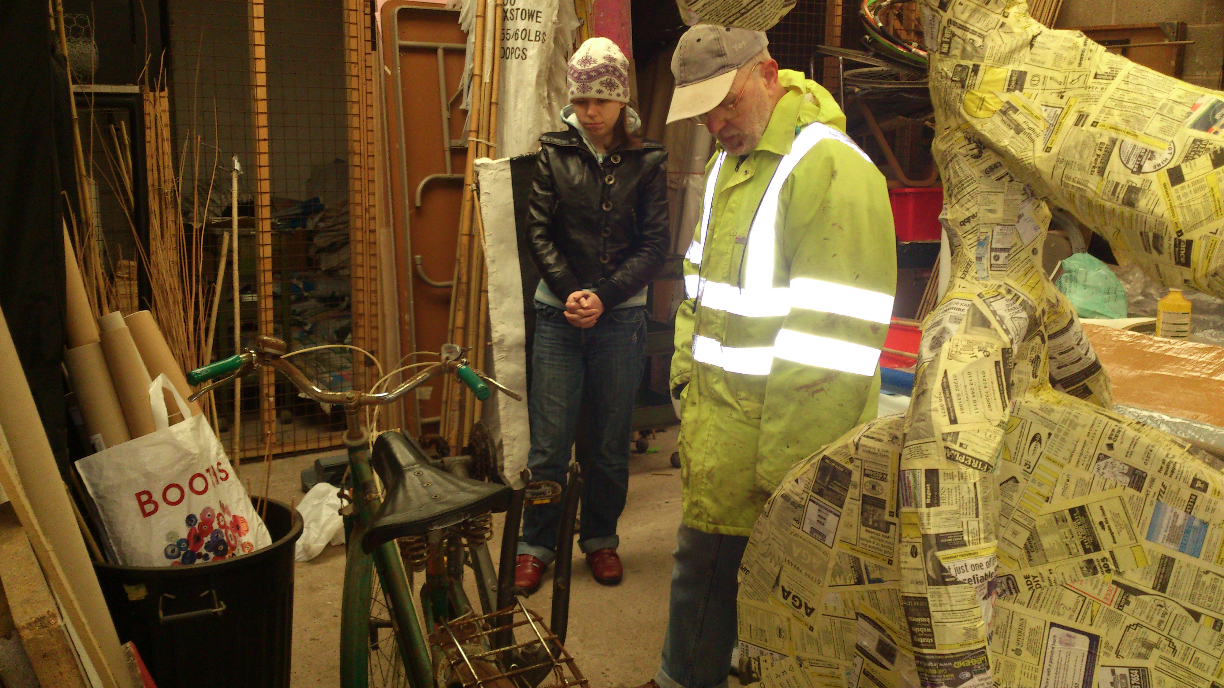 On the morning that I was due to talk to Ali Jones of Pioneer Projects about it, I came across a video of street arts company Luxe at the St. Patrick’s Parade in Dublin which, funnily enough, contained horse automata. Ali liked both my ideas, and the ones in the video when I showed her, and she gave me the go ahead to pursue that idea. It turned out that there was at least one old bike that we could use at Looking Well, (the celebratory arts based healthy living centre run by Pioneer Projects) already. We also decided that it would be best as a static installation, rather than a working “horse-drawn” carriage that would drive down the road.