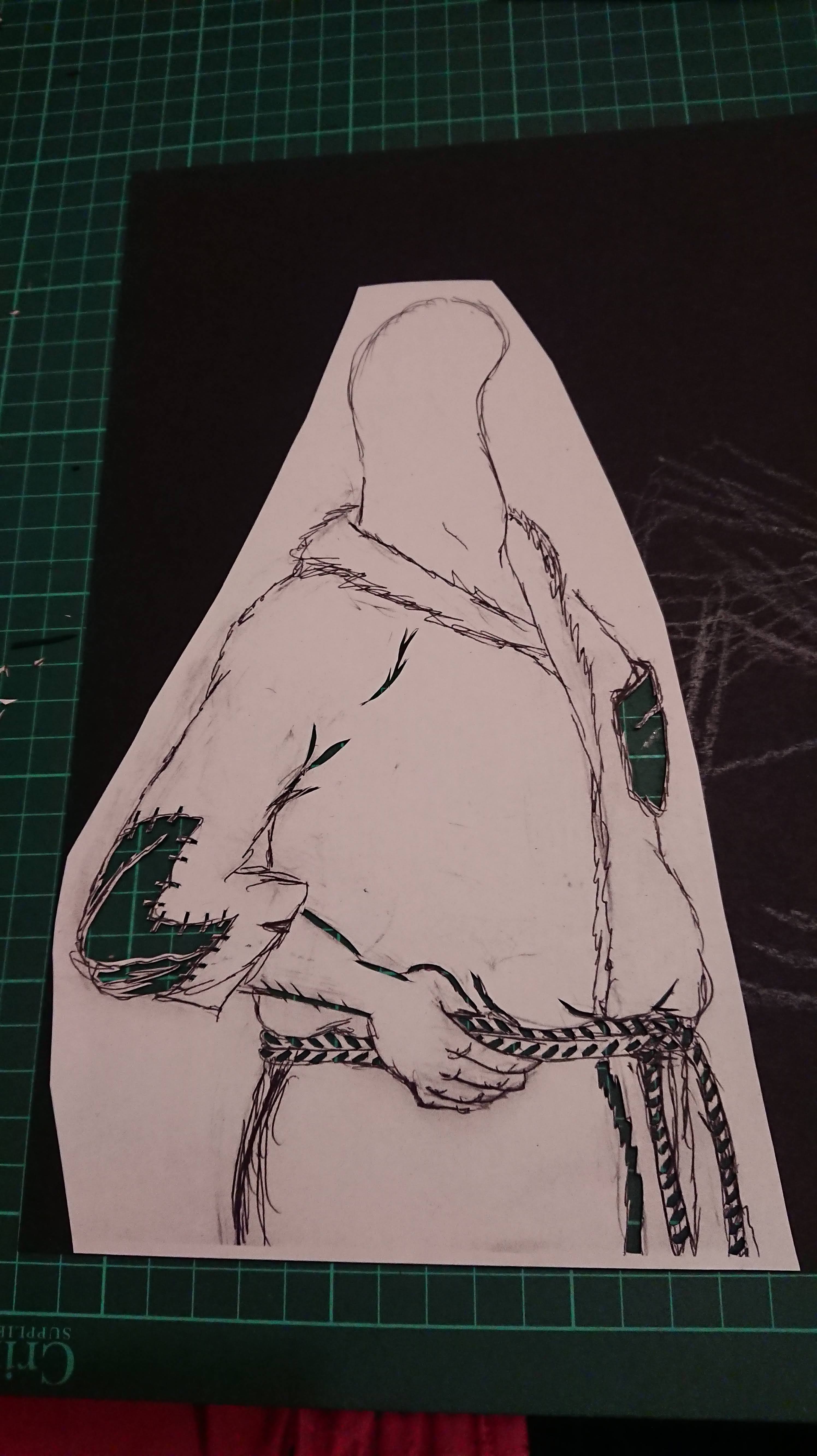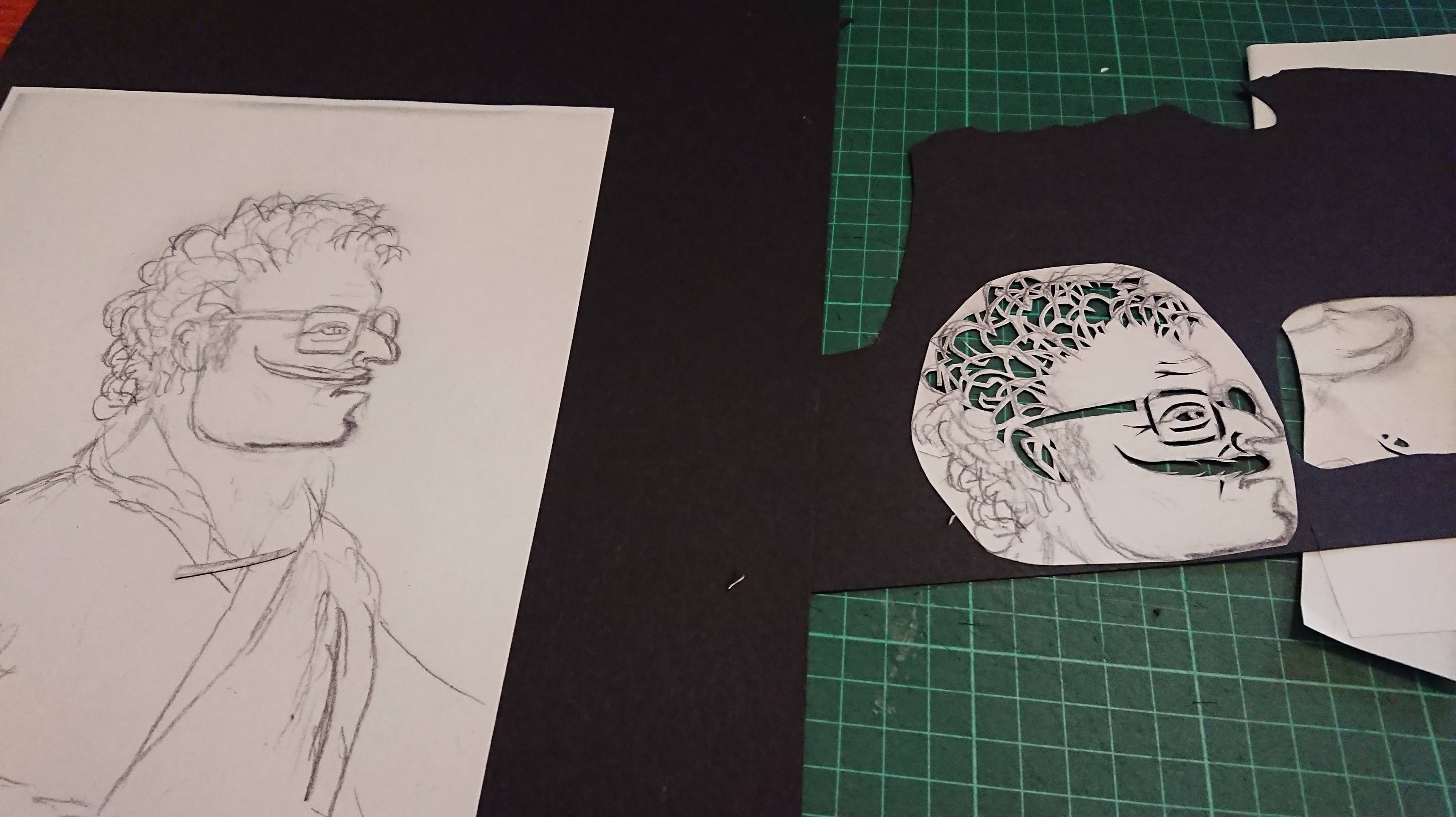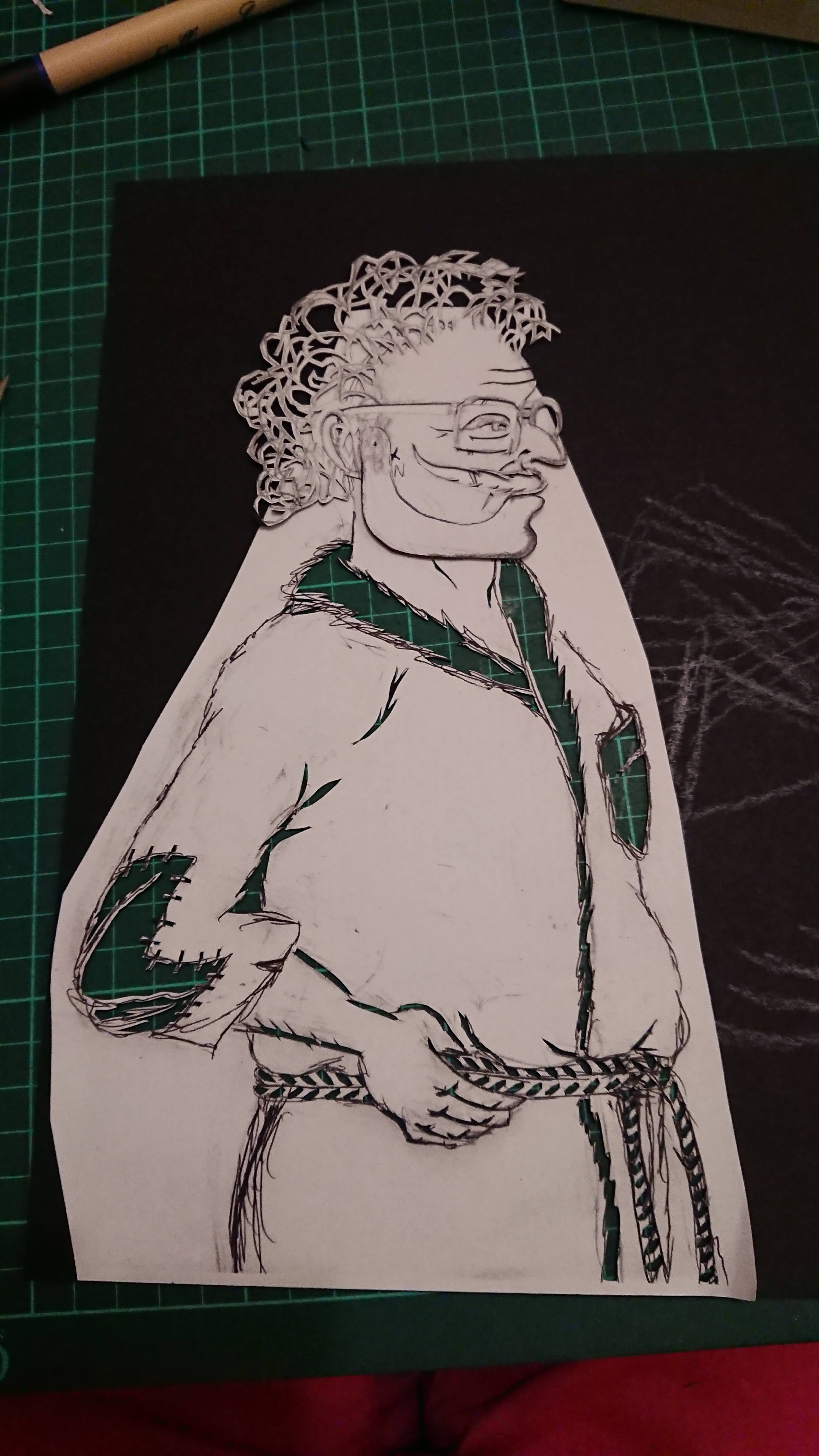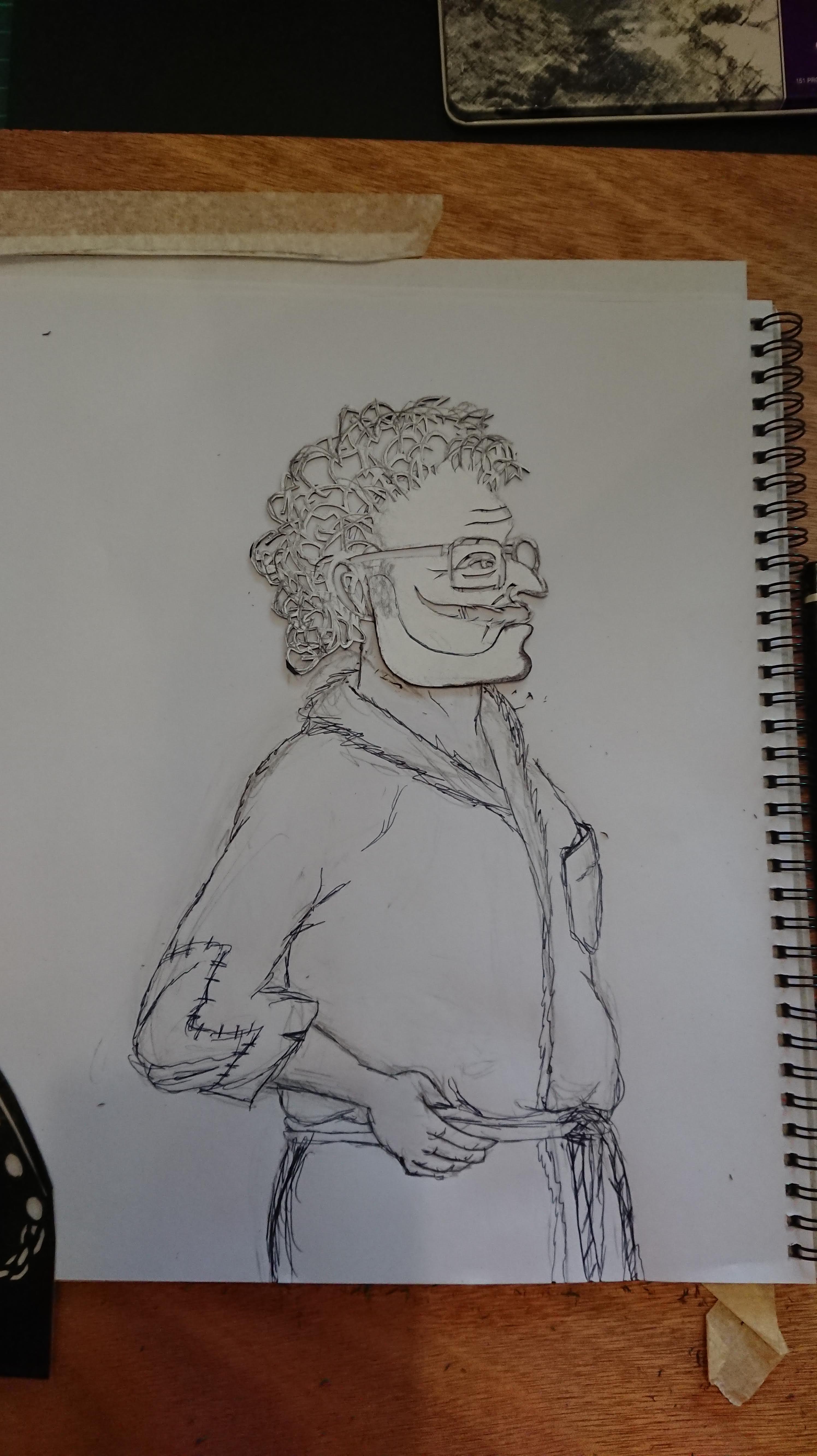 Having completed the head I re-drew the torso as the original drawing was a bit sketchy and lacking in detail. I also wanted to show him in a profile rather than 3/4 view. I’m not sure if the finished image isn’t slightly on the skew, but I knew I was happy with it, (whether it was a true profile view or not).