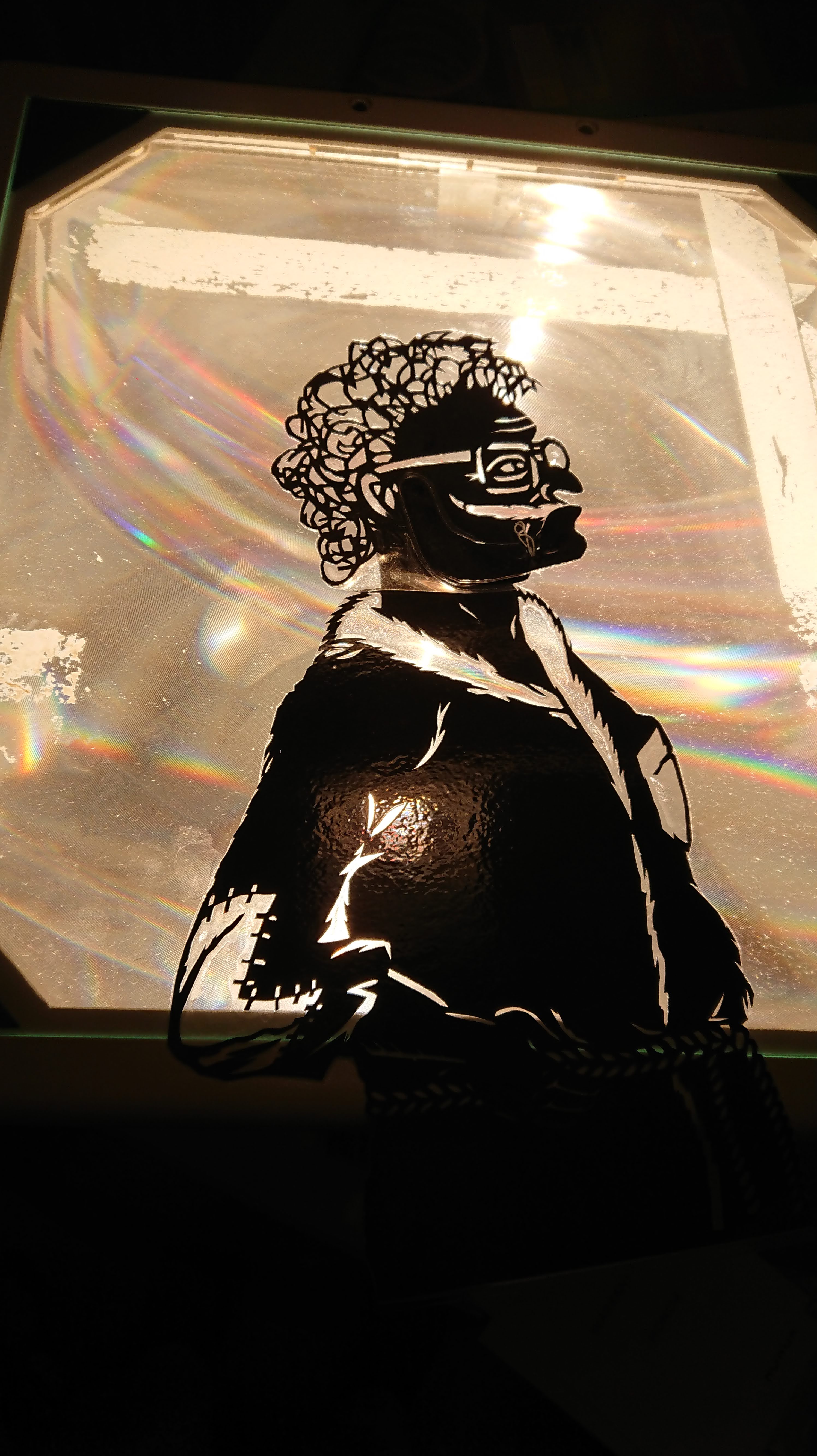 I secured the jaw shut with elastic in the same way as with the Prime Minister (which still allows the mouth to be opened when he needs to talk). The joint is not very flat because the elastic knot is quite big but the shadow on the screen looks fine.